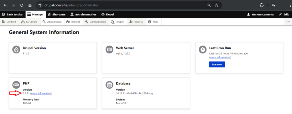 Now open your DEV site in the browser: https://drupal-dev.yourdomain.com